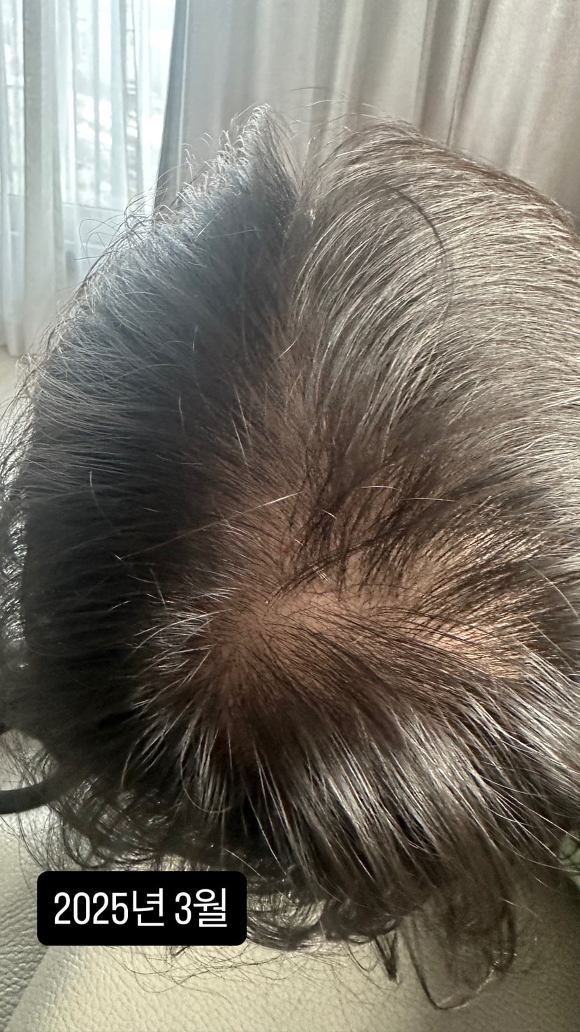 언제부터인가 정수리 쪽이 점점 휑해지는 게 거울 볼 때마다 너무 신경 쓰이더라고요. 앞머리나 M자보다 정수리는 본인이 보기보다 주변 사람들이 먼저 알아차리는 경우가 많다 보니 피하는 것보다 부딪히는 게 낫겠다 싶어서 용기 내서 병원 상담을 받아봤어요. 상담 전에 찍은 사진을 확대해서 보니 생각보다 면적이 꽤 넓었고 전체적으로 모발이 얇아서 밀도가 낮다고 하시더라고요. 원장님께서 두피 상태를 자세히 살펴보시면서 정수리 쪽은 생착률 자체는 좋은 편이지만 면적이 넓은 경우에는 2000모만으로는 생각하는 풍성한 느낌을 내기가 어렵다고 설명해주셨어요. 처음엔 2000모면 꽤 많지 않나 싶었는데 실제로는 정수리 전체를 커버하기엔 부족할 수 있다고 하시더라고요. 그리고 결정적으로 제 후두부 상태가 조금 얇고 밀도가 낮아서 너무 무리하게 많은 양을 채취하기엔 어려움이 있을 수 있다고 하셨어요. 그래서 원장님이 추천해주신 방법이 바로 정수리 2000모 이식과 모낭줄기세포 치료 병행이었어요. 모낭줄기세포 치료는 기존 모발의 성장 환경을 개선하고 이식된 모낭의 생착을 돕는 역할을 한다고 하더라고요 즉 이식을 하면서도 남아 있는 머리카락을 최대한 살리는 방향으로 치료를 병행하는 거죠 상담 중에 가장 좋았던 건 단순히 더 많이 심읍시다가 아니라 제 모발 상태와 두피 여건을 고려해서 현실적인 방법을 제시해주셨다는 점이었어요 무턱대고 많은 양을 심는 것보다 생착률과 모질 개선을 함께 고려하는 게 결과적으로 훨씬 자연스럽고 효율적이라는 설명이 이해가 됐습니다 그렇게 모발이식이랑 모낭줄기세포 주사치료를 받게 됐고 벌써 치료 받기 시작한지 1년이 지났습니다 치료 받을 때 머리 언제 올라오나 하면서 맨날 거울만 들여다봤는데 1년이 지나니 이렇게 빼곡해진 머리가 돼서 새삼 기쁘네요