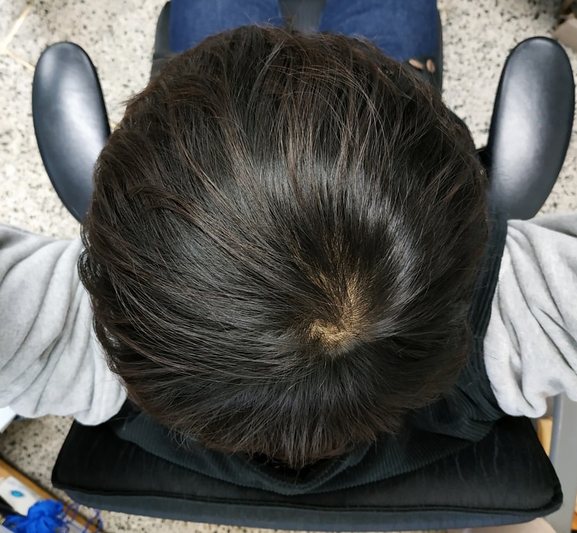 언제부터인가 정수리 쪽이 점점 휑해지는 게 거울 볼 때마다 너무 신경 쓰이더라고요. 앞머리나 M자보다 정수리는 본인이 보기보다 주변 사람들이 먼저 알아차리는 경우가 많다 보니 피하는 것보다 부딪히는 게 낫겠다 싶어서 용기 내서 병원 상담을 받아봤어요. 상담 전에 찍은 사진을 확대해서 보니 생각보다 면적이 꽤 넓었고 전체적으로 모발이 얇아서 밀도가 낮다고 하시더라고요. 원장님께서 두피 상태를 자세히 살펴보시면서 정수리 쪽은 생착률 자체는 좋은 편이지만 면적이 넓은 경우에는 2000모만으로는 생각하는 풍성한 느낌을 내기가 어렵다고 설명해주셨어요. 처음엔 2000모면 꽤 많지 않나 싶었는데 실제로는 정수리 전체를 커버하기엔 부족할 수 있다고 하시더라고요. 그리고 결정적으로 제 후두부 상태가 조금 얇고 밀도가 낮아서 너무 무리하게 많은 양을 채취하기엔 어려움이 있을 수 있다고 하셨어요. 그래서 원장님이 추천해주신 방법이 바로 정수리 2000모 이식과 모낭줄기세포 치료 병행이었어요. 모낭줄기세포 치료는 기존 모발의 성장 환경을 개선하고 이식된 모낭의 생착을 돕는 역할을 한다고 하더라고요 즉 이식을 하면서도 남아 있는 머리카락을 최대한 살리는 방향으로 치료를 병행하는 거죠 상담 중에 가장 좋았던 건 단순히 더 많이 심읍시다가 아니라 제 모발 상태와 두피 여건을 고려해서 현실적인 방법을 제시해주셨다는 점이었어요 무턱대고 많은 양을 심는 것보다 생착률과 모질 개선을 함께 고려하는 게 결과적으로 훨씬 자연스럽고 효율적이라는 설명이 이해가 됐습니다 그렇게 모발이식이랑 모낭줄기세포 주사치료를 받게 됐고 벌써 치료 받기 시작한지 1년이 지났습니다 치료 받을 때 머리 언제 올라오나 하면서 맨날 거울만 들여다봤는데 1년이 지나니 이렇게 빼곡해진 머리가 돼서 새삼 기쁘네요