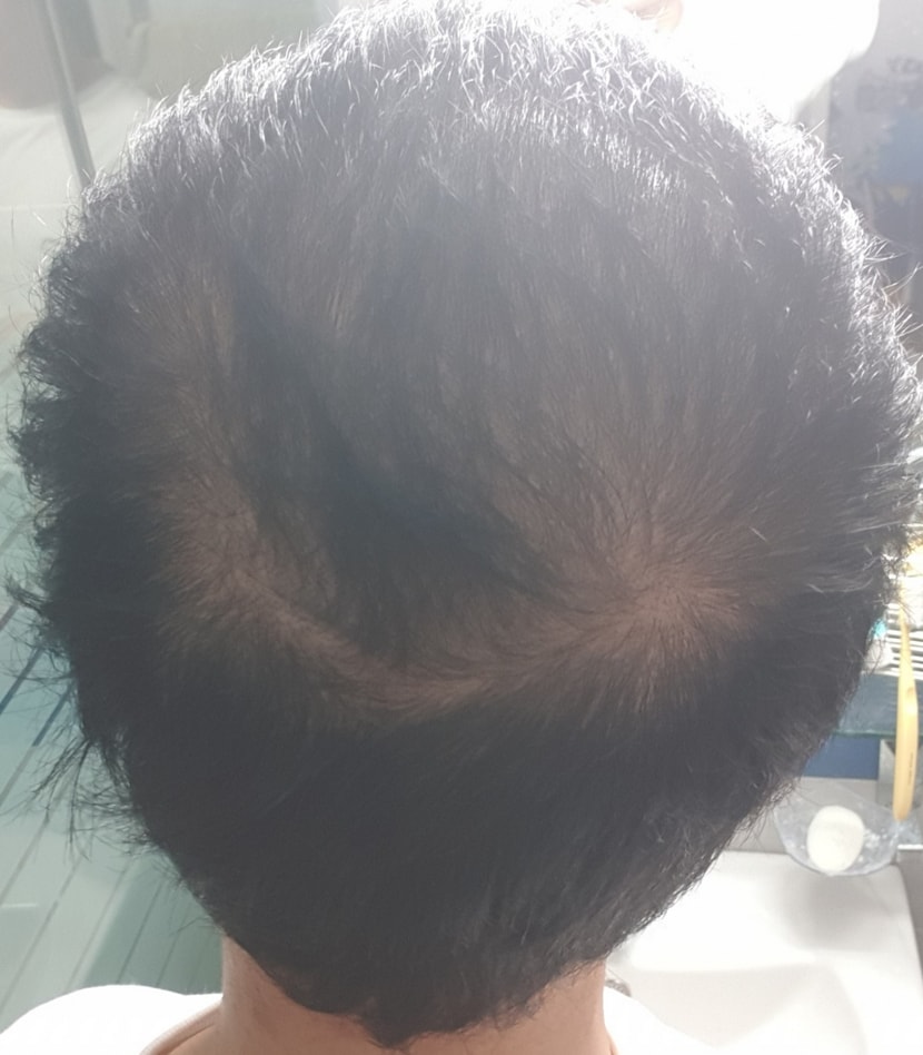 치료 전 - 3개월차 - 9개월차 순입니다 저의 탈모 고민은 30대 초반부터 시작됐습니다 처음에는 머리카락이 좀 빠지나 싶었지만 시간이 지날수록 이마 라인이 점점 올라가는 게 눈에 보였죠 그때부터 피나스테리드를 복용하기 시작했고 거의 8년 가까이 꾸준히 먹었습니다 그 덕분인지 빠지는 속도는 어느 정도 잡히는 느낌이 있었고 크게 불만 없이 유지하고 있었습니다 그러다 주변에서 두타스테리드가 효과가 더 좋다고 해서 좀 더 공격적으로 관리해보고 싶다는 생각에 약을 바꿨습니다 약 2년 정도 복용했는데 저같은 경우엔 부작용이 꽤 뚜렷하게 나타났습니다 몸이 이상하게 자꾸 처지고 기운이 없었고 감정 기복이 생기면서 우울감도 느껴졌습니다 단순히 기분 탓이 아니라 확실히 약 때문이라는 느낌이 들더라고요 발모 효과도 솔직히 기대만큼 크지 않았습니다 결국 6개월 전부터는 다시 피나스테리드로 돌아왔고 다행스럽게도 몸 컨디션은 다시 편안해졌죠 국소 미녹시딜도 함께 사용하긴 했지만 매일 꾸준하게 바르는게 생각보다 쉽지는 않아서 간헐적으로만 사용했네요 나한테 맞지 않는 관리를 하고 있는게 아닌가 싶어서 상담을 갔고 원장님께서 현재 상태가 그렇게 심각하지 않다고 말씀해주셨어요 아직은 많이 진행된 상태가 아니고 지금부터라도 관리를 잘하면 앞으로도 충분히 유지 가능하다고 하시더라고요 그래서 이번에는 단순히 약에만 의존하는 게 아니라 적극적으로 두피 상태 자체를 개선해보자는 생각이 들더라구요 그리고 저는 줄기세포 치료에 대한 설명을 들었고 총 20회 받기로 결정했죠 솔직히 치료받기 전에는 효과에 대한 의심도 있었고 ‘내가 과연 이런 시술까지 받아야 하나’라는 생각도 들었습니다 하지만 지금은 확실히 만족하고 있습니다 치료를 시작한 지 6개월쯤 지나고부터 두피가 전보다 훨씬 덜 예민해졌다는 걸 느꼈고 모발 굵기도 조금씩 두꺼워지는 느낌이 있었습니다 머리 감을 때 빠지는 양도 예전보다 확실히 줄었고 거울 볼 때마다 정수리가 눈에 띄게 갈라지던 시절과 비교하면 지금은 꽤 안정적으로 유지되고 있다는 느낌이 듭니다 주변에서도 많이 좋아졌다는 얘기해주고 스스로도 확실히 자신감이 생긴 걸 느끼네요 탈모는 진행되기 전에 관리하는 게 정말 중요하다는 걸 이번에 다시 한번 느꼈습니다 예전에는 약만 복용하면 괜찮겠지 싶었는데 지금은 두피 환경을 건강하게 유지하는 것도 그만큼 중요하다는 걸 알게 됐네요 같은 고민을 하고 계신 분들이라면 너무 늦기 전에 병원에서 상태를 정확히 진단받아보고 나한테 맞는 치료 방향을 찾는 게 가장 좋다고 생각합니다 남은 횟수도 잘 받아서 머리 걱정 안하는 날이 왔으면 좋겠습니다