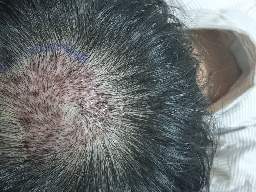 20岁出头,为了矫正M型脱发、降低额头高度,决定植发,第一次到医院就诊时,医生护士都很有信心地讲解,马上手术。 之后第2周摘除了结痂,与其他医院不同,被告知可以开始喝酒和吸烟,从第1个月开始移植头发开始脱落,目前几乎没有头发。
