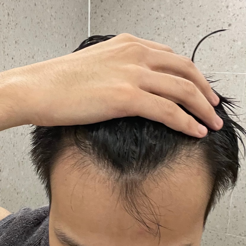 术后1个月增加简要后期。 拆线2周后去医院做角质护理(?) 据说是20万韩元的服务,但只要喷洒药品、洗头、晒10分钟红外线(如果让我交钱,就绝对要收...) 拍了几张照片,拿了脱发药处方就下来了。 请9个月后再来。 一个月左右,黑暗期似乎开始了。 使用指纹洗发水后,无论是原有毛发还是移植毛发,都会掉很多。 洗发水时切开/移植部位还有点疼痛。
