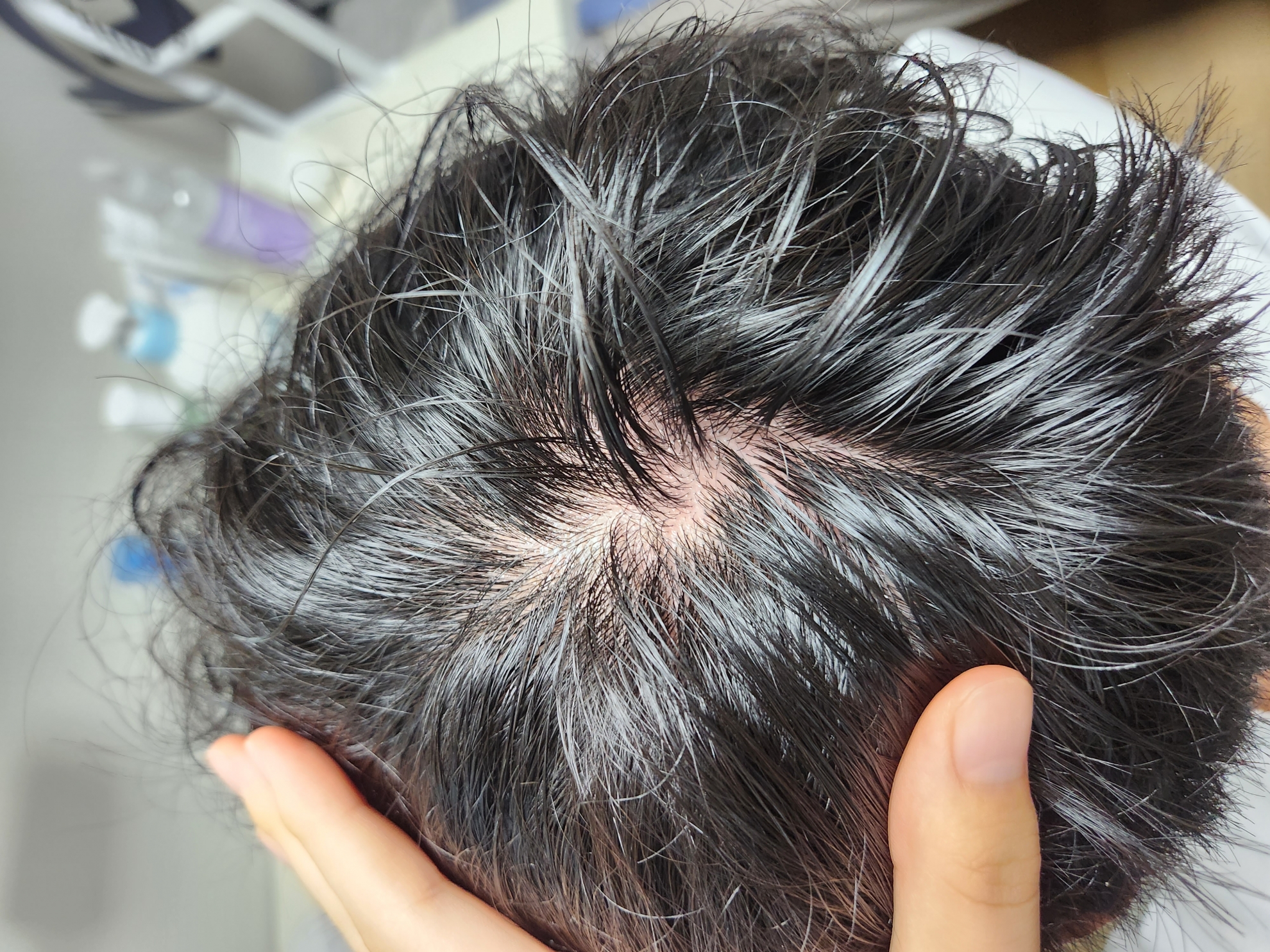 术后1个月增加简要后期。 拆线2周后去医院做角质护理(?) 据说是20万韩元的服务,但只要喷洒药品、洗头、晒10分钟红外线(如果让我交钱,就绝对要收...) 拍了几张照片,拿了脱发药处方就下来了。 请9个月后再来。 一个月左右,黑暗期似乎开始了。 使用指纹洗发水后,无论是原有毛发还是移植毛发,都会掉很多。 洗发水时切开/移植部位还有点疼痛。
