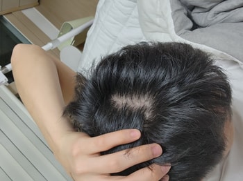 <毛发移植毛发>从20岁出头的大学生时期开始,M字就深深扎根于毛发移植,后来又被多家毛发移植整形医院上门咨询报价。但是到了40岁,终于实现了夙愿(?)事业。提前预约了长假前一天的10月2日,在NEWHAiR 植发中心以非切开完全剃头的方式进行了毛发移植手术。下面是毛发移植之前的照片。 如果迎面吹向额头,就会暴露出他完全是秃头。 < 毛囊结晶>在1,300和1,600个毛囊之间犹豫不决。第一次接受咨询的时候,其实只想做1300毛囊。其实我从幼年时期开始额头就有点M字,所以觉得如果变化太大,会不自然。但也不是容易的手术,为了最大限度地提高满意度,最终选择了1600毛囊。以下设计为手术当天绘制的1600毛囊基准图。 是考虑到现有头发的重叠部位而画的。 < 手术方式 >我也是上班族,但利用长假,选择了完全剃光头的方式。虽然比部分剃头、无剃头便宜,但手术后在家管理起来会更方便。(当然,过完假期回到公司,也害怕职场同事的反应和后果。呜呜)手术室用葫芦瓢果断地剃了头发。 但是也不是完全光头,好像留了2mm左右。之后趴在手术台上,从后脑勺采集毛囊用了2个半小时,午饭吃短后,重新移植到空额头花了3个小时左右。从进入医院到出来,包括咨询、向导、午餐等在内,大约花了7个小时。本来移植的时候听说可以看手机或书,所以野心勃勃地还带了一本书,但是手术室的灯光太耀眼了,不容易。如果习惯了,可以通过手机或手术台前的显示器观看视频,但我只是闭着眼睛静静地呆着。 偶尔也会打瞌睡。手术除了麻醉,没有太大的问题。只是采集部位和移植部位麻醉时非常疼。 不是一般的"刺痛"水平。当然,是可以忍住的程度,但这是持续几分钟的... 采集部位麻醉结束后,移植部位麻醉时特别可怕。ㅠ在移植过程中,毛囊有些不够,就追加采集了,结果可以多移植一点,达到1675毛囊。< 手术1天(翌日)>手术后也没有特别的疼痛,只有喉部采集部位偶尔会有麻麻的感觉。头发这样很难出门,但很少有不适到影响日常生活。手术第1天的第二天,来院学习洗发水的方法,接受了高压氧治疗、激光治疗等后续护理。第1天第一次洗头时,喉部采集部位非常刺痛。ㅠ 但第1天晚上在家洗的时候好多了,第2天更好。第1天的状态如下照片。 < 手术第 3 天 >最后上传今天早上拍的照片。 今天早上起床的时候无意中碰了一下移植部位。 稍微流了一点血。值得庆幸的是,因为是额头发际线最边缘的角落,所以是即使丢失也不会伤心的部位。手术后一段时间内绝对不能碰移植部位。 你说你那么小心,尤其是早上似醒非醒的时候。虽然移植部位、采集部位都还有不少红肿,但似乎正在慢慢变淡。虽然马上就要经历黑暗期了,但是好好克服,明年中秋节的时候,在迎风面前也能堂堂正正地昂首挺胸,不管在哪里都能昂首挺胸吧?术前咨询、手术当天、术后第1~2天护理等所有过程均令人满意。 感谢NEWHAiR 植发中心院长和护士等所有工作人员亲切细致的接待和治疗。