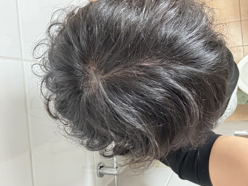 MOEM Clinic以隐藏镜头的方式从金仁诚院长那里收到了礼物 有头发还没掉的部分 也有新长的地方 在远处看也看不出来 就是露着头发出门 过了2个月 我烫头发了 很满足