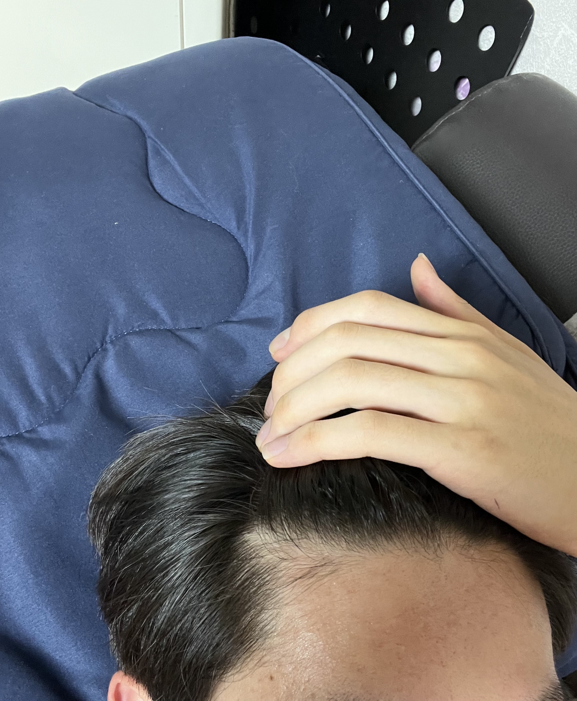 "我从小就有挺深的M字额,每次照镜子压力都很大。 因为家里大部分都是M字,所以遗传影响很大,最近头发密度好像逐渐减少,所以正式开始考虑毛发移植了。 在切开法和非切开法之间犹豫不决,最终决定采用疤痕担心少、恢复快的非切开法。 还要离开公司^^幸好中秋连休很长,所以可以好好休息了。 手术前其实很紧张。 特别是只进行局部麻醉后进行,所以担心疼痛。 但是比担心的要容易得多。 麻醉注射虽然有点刺痛,但除此之外没有太大的疼痛,只是趴着呆1个小时以上真的很累。 "毛囊采集就像用微创的拳头轻轻一击,院长手快,比想象中来得快。 体感上好像花了1个半小时左右。 之后再次确认了额头线条,移植时院长也用植发器进行了移植。 移植方面好像刚做完。 姿势也很舒适。 这部分也是院长亲自执导的。 整个手术时间大概足足花了4个小时左右。 目前移植后过了两天,可能是因为非切开方式,几乎没有疼痛感,采集部位也不会感到痒或刺痛。 只是移植部位会随着时间的流逝产生紧绷感,所以正在认真喷医院给的喷雾。 如果头发只长到移植的程度,可以想象额头线条会变得帅气,所以很期待。 只要恢复得好就好了。因为现在还是管理重要的时期,所以正在小心翼翼地行动,相信只要坚持一个月,就会越来越自然。 决定毛发移植,又做了手术,我觉得挺好的。 如果能更有自信地出门的话,即使辛苦也要进行毛发仪式。