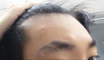 20岁出头,为了矫正M型脱发、降低额头高度,决定植发,第一次到医院就诊时,医生护士都很有信心地讲解,马上手术。 之后第2周摘除了结痂,与其他医院不同,被告知可以开始喝酒和吸烟,从第1个月开始移植头发开始脱落,目前几乎没有头发。