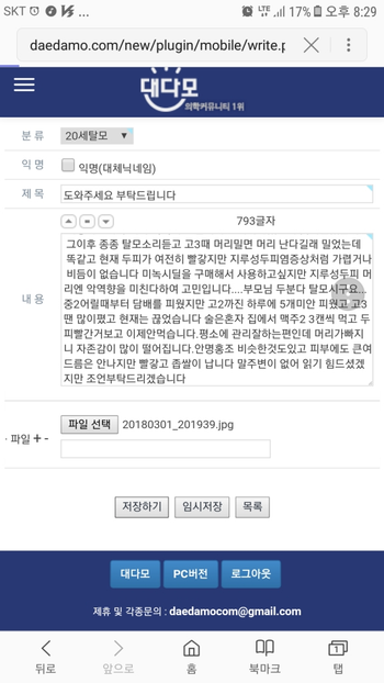 [20岁脱发] 심한거지? 사진 댓글에 첨부