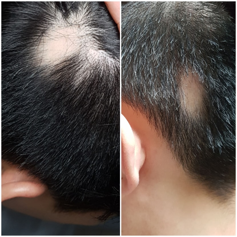 终于到一个月了 画片完全消失了 现在头发慢慢长起来了 能看到比第一次长了很多吗? 嘿嘿 一个月差这么多 很期待第6个月 第1年会怎么样 虽然现在还很早 但是能看到希望 所以很幸福