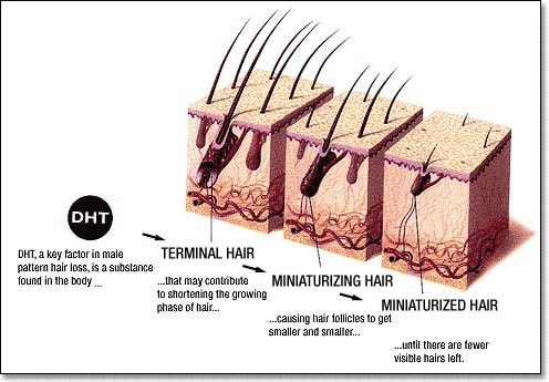 这样看来,Finasteride等生发剂是具有抑制睾酮转化为脱发原因的二氢睾酮(DHT)的酶作用的药物。