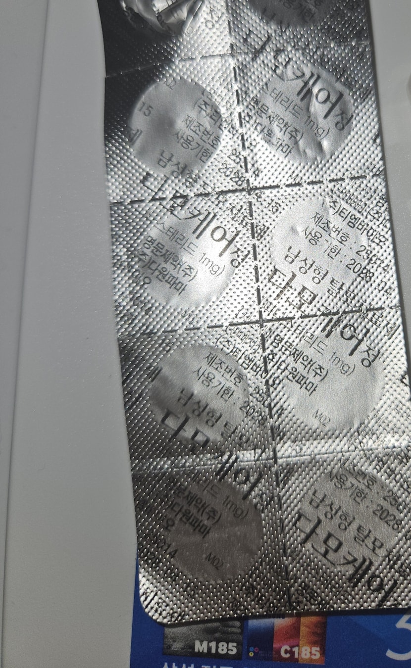 术后1个月增加简要后期。 拆线2周后去医院做角质护理(?) 据说是20万韩元的服务,但只要喷洒药品、洗头、晒10分钟红外线(如果让我交钱,就绝对要收...) 拍了几张照片,拿了脱发药处方就下来了。 请9个月后再来。 一个月左右,黑暗期似乎开始了。 使用指纹洗发水后,无论是原有毛发还是移植毛发,都会掉很多。 洗发水时切开/移植部位还有点疼痛。