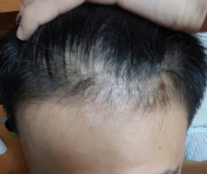 20岁出头,为了矫正M型脱发、降低额头高度,决定植发,第一次到医院就诊时,医生护士都很有信心地讲解,马上手术。 之后第2周摘除了结痂,与其他医院不同,被告知可以开始喝酒和吸烟,从第1个月开始移植头发开始脱落,目前几乎没有头发。