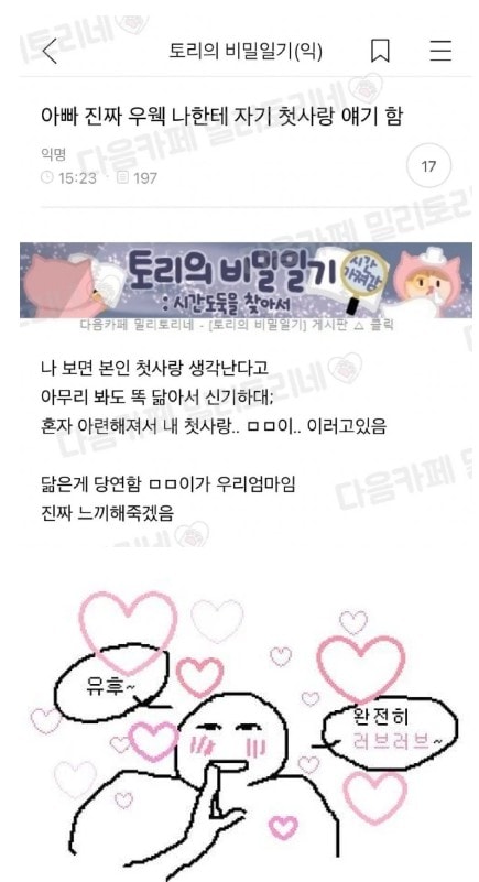 约定的6个月后确认过了,但是没有变化。呜呜 因为总是露额头,所以好像确认了一下额头。 请再忍耐一下。 不会晃动的地幔,呵呵,好像还在洞里长出细毛。 这个月晚了,下个月会再以好消息回来的。 嘿 感谢今天也来到现场的朋友们。~~~