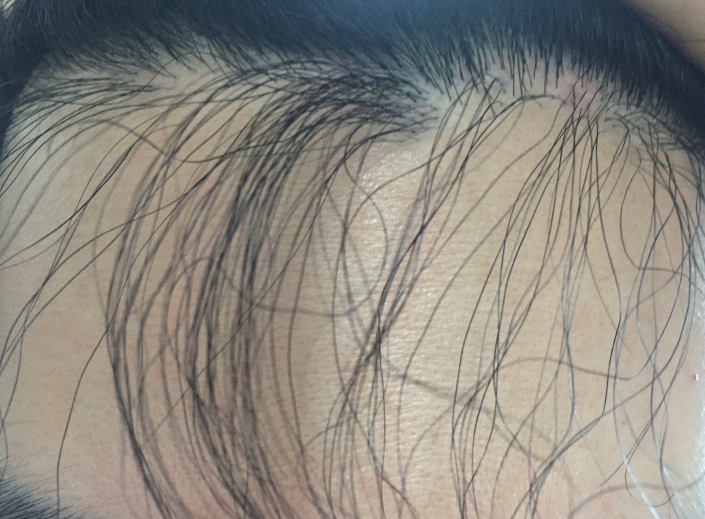 20岁出头,为了矫正M型脱发、降低额头高度,决定植发,第一次到医院就诊时,医生护士都很有信心地讲解,马上手术。 之后第2周摘除了结痂,与其他医院不同,被告知可以开始喝酒和吸烟,从第1个月开始移植头发开始脱落,目前几乎没有头发。