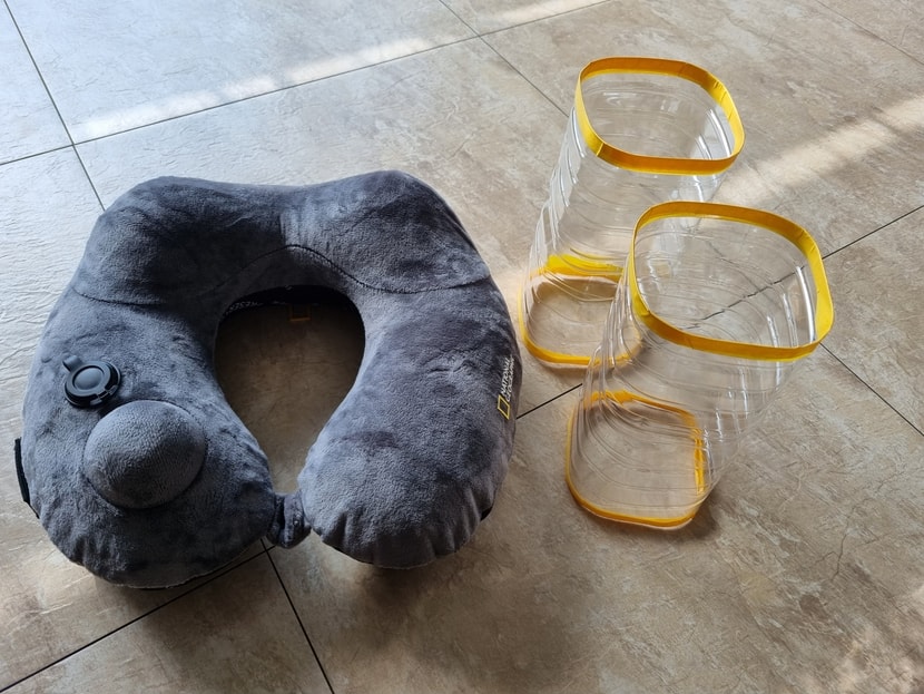 准备了充气颈枕 <根据进气量可调节结实或柔软的气垫感优点>