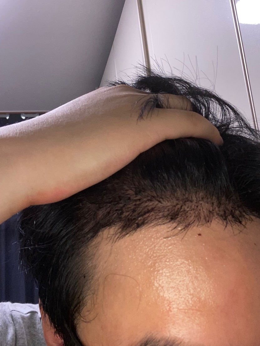 选择医院的理由是因为毛发移植本来就很有名,所以经过咨询后觉得不错,所以决定去医院。手术当天的感受是结束得太轻松了,比想象中更容易恢复疼痛现在是等待头发茁壮成长的状况!这是在家去除角质后拍的照片,可能是因为在家自己拍的,所以没有完全掉下来。现在分开的很干净。