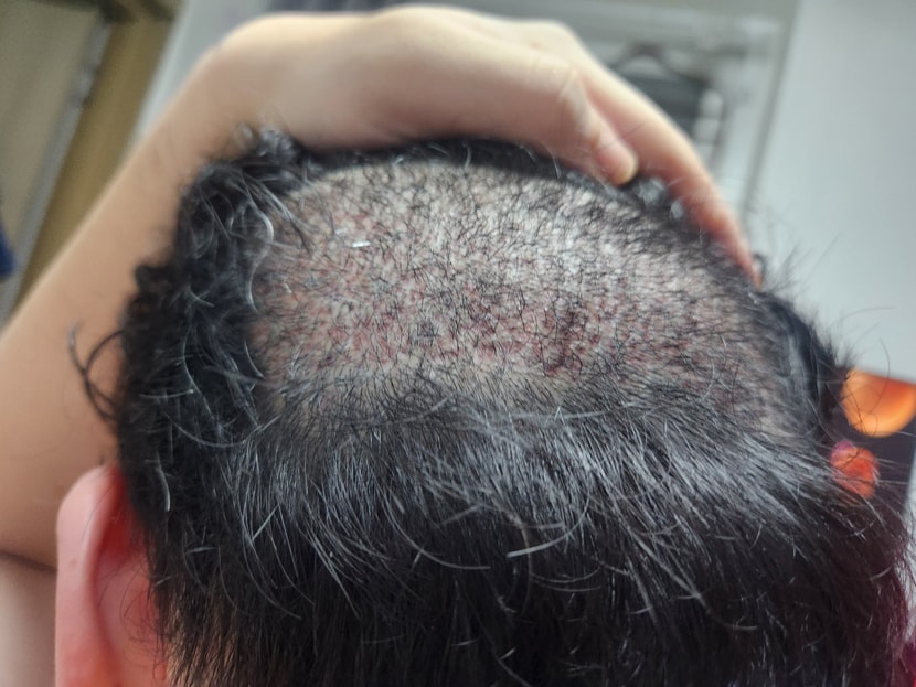 20岁出头,为了矫正M型脱发、降低额头高度,决定植发,第一次到医院就诊时,医生护士都很有信心地讲解,马上手术。 之后第2周摘除了结痂,与其他医院不同,被告知可以开始喝酒和吸烟,从第1个月开始移植头发开始脱落,目前几乎没有头发。