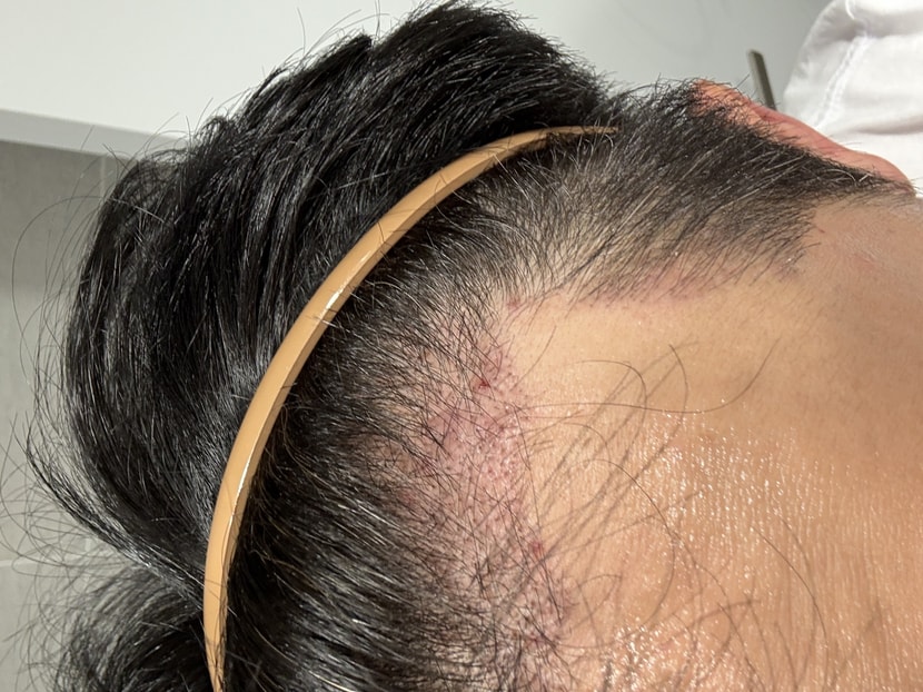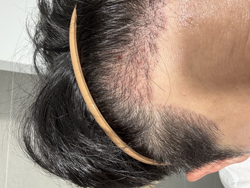 20岁出头,为了矫正M型脱发、降低额头高度,决定植发,第一次到医院就诊时,医生护士都很有信心地讲解,马上手术。 之后第2周摘除了结痂,与其他医院不同,被告知可以开始喝酒和吸烟,从第1个月开始移植头发开始脱落,目前几乎没有头发。