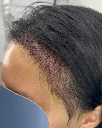 20岁出头,为了矫正M型脱发、降低额头高度,决定植发,第一次到医院就诊时,医生护士都很有信心地讲解,马上手术。 之后第2周摘除了结痂,与其他医院不同,被告知可以开始喝酒和吸烟,从第1个月开始移植头发开始脱落,目前几乎没有头发。
