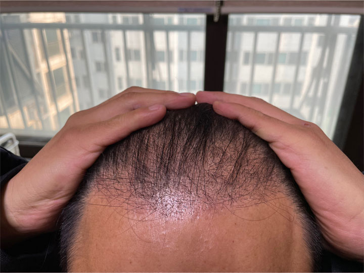 20岁出头,为了矫正M型脱发、降低额头高度,决定植发,第一次到医院就诊时,医生护士都很有信心地讲解,马上手术。 之后第2周摘除了结痂,与其他医院不同,被告知可以开始喝酒和吸烟,从第1个月开始移植头发开始脱落,目前几乎没有头发。