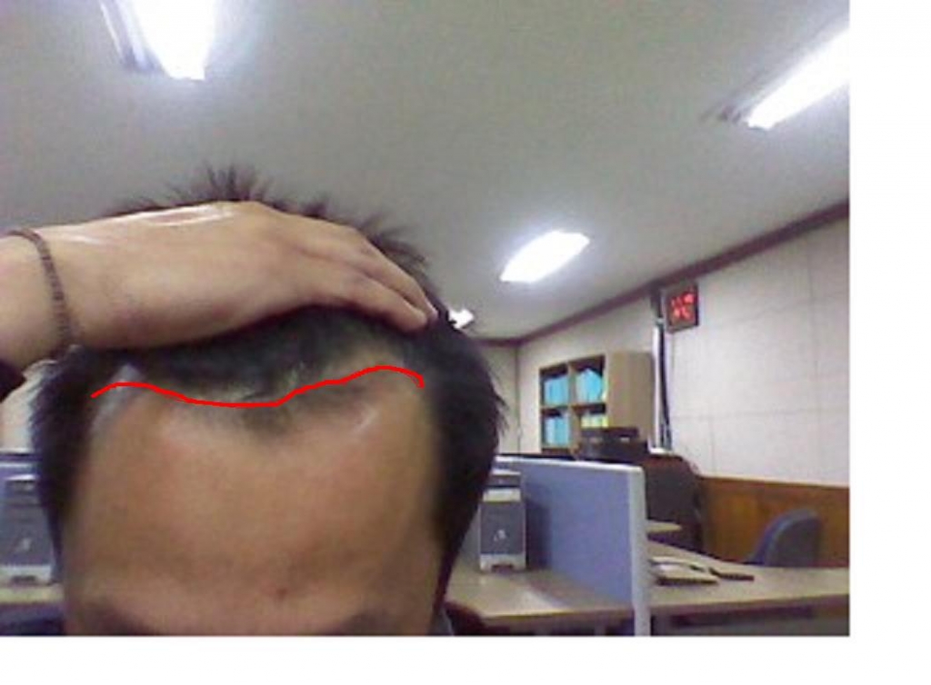 우리 아버지도 내 사진과 똑같이 빨간선 밑으로 머리카락이 없습니다..