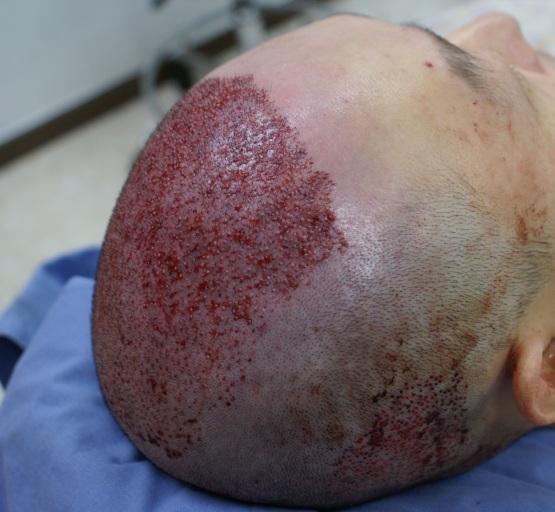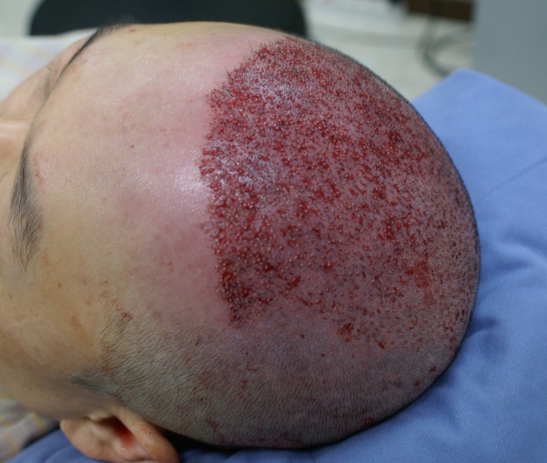 20岁出头,为了矫正M型脱发、降低额头高度,决定植发,第一次到医院就诊时,医生护士都很有信心地讲解,马上手术。 之后第2周摘除了结痂,与其他医院不同,被告知可以开始喝酒和吸烟,从第1个月开始移植头发开始脱落,目前几乎没有头发。