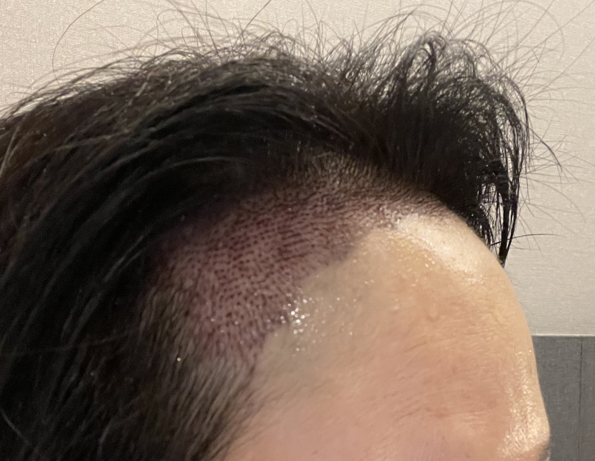 移植毛发的人最害怕的黑暗期...呵呵呵,终于过了3个月了! 虽然我没有比别人经历的那么严重,所以心里没那么辛苦,但是过去之后心里就踏实多了。呵呵,头发虽然很细,但是能看到新上来的样子,真是太神奇了!!移植的秧苗现在也长大了,在日常生活中很自然,如果不注意就看不出来。 空着的M字型宽阔的额头好像已经很久了,看照片的话有点别扭。><希望头发快点长出来!!