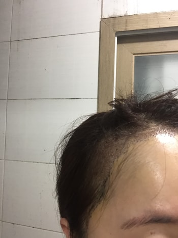 20岁出头,为了矫正M型脱发、降低额头高度,决定植发,第一次到医院就诊时,医生护士都很有信心地讲解,马上手术。 之后第2周摘除了结痂,与其他医院不同,被告知可以开始喝酒和吸烟,从第1个月开始移植头发开始脱落,目前几乎没有头发。