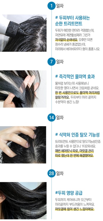 1. 充分浸湿头发后,取适量本产品涂抹于头皮和头发上。