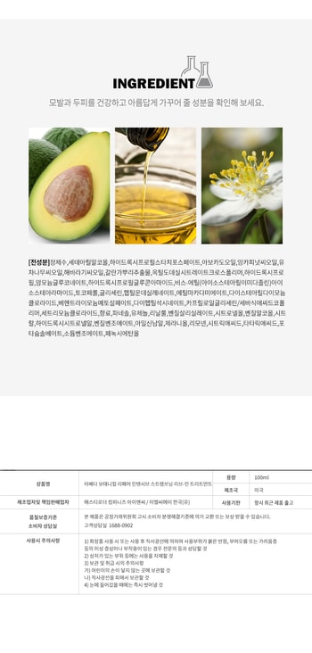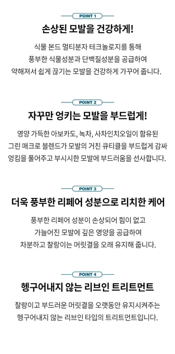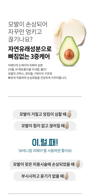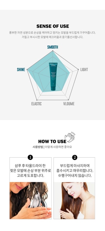 改善头发损伤,使头发健康光滑的日常护理产品。 涂抹于浸湿的头发上。 不冲洗。含有的成分