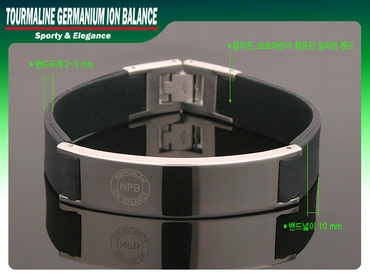 토르마린이 함유되 실리콘 밴드입니다.(토르마린이란 음이온이나오는 그런 광물을 가루를 낸거라 보시면 됩니다.)