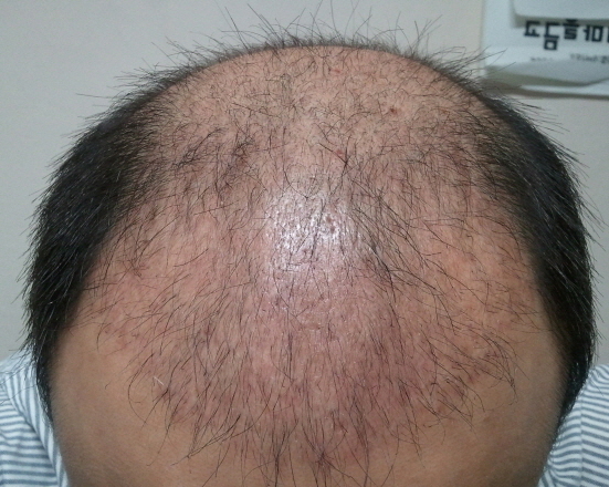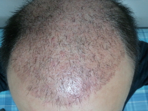 手术后1个月的照片是移植毛剩下30%左右时的照片。