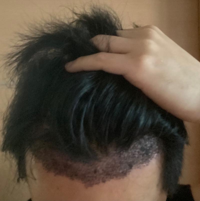因为院长说我的脸比例是三分之一 所以我的额头是7cm 所以就那么做了 想快点过1年看到我的头发长出来的样子 堂堂正正地希望吹的时候也想去看看