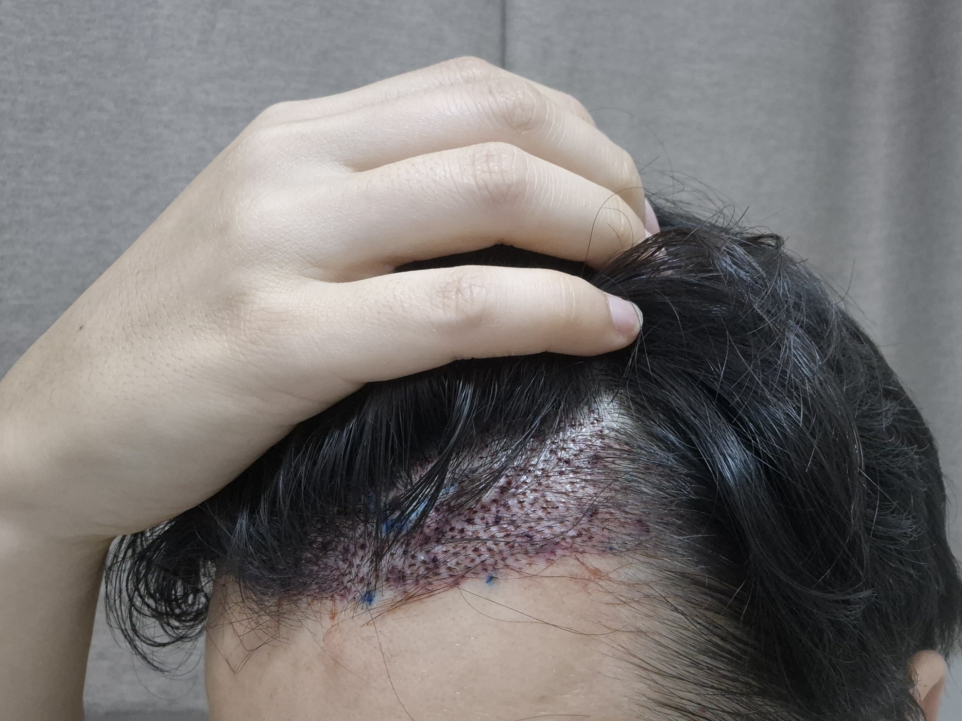 目前移植后过了两天,可能是因为非切开方式,几乎没有疼痛感,采集部位也不会感到痒或刺痛。
