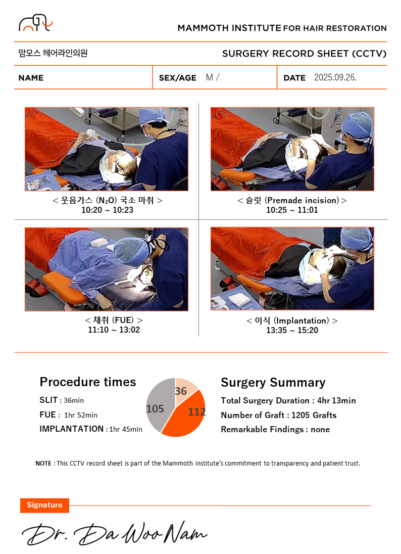 <狎鸥亭猛犸发际线诊所非切开毛发移植后记 (狭缝方式)>