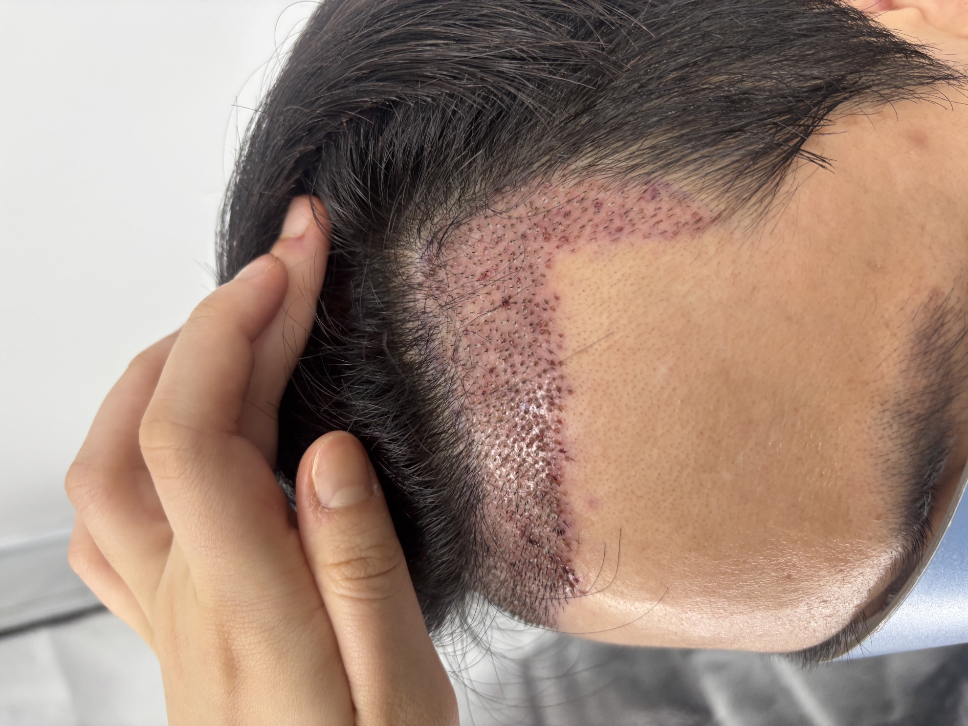 从以前开始因为遗传额头就很宽,一直都是盖着头发,现在奔向30多岁,感觉头发一直在往上翘。 不能再这样下去了 各种各样的都试过,也试过,但是最终还是决定用毛发移植进行了手术。