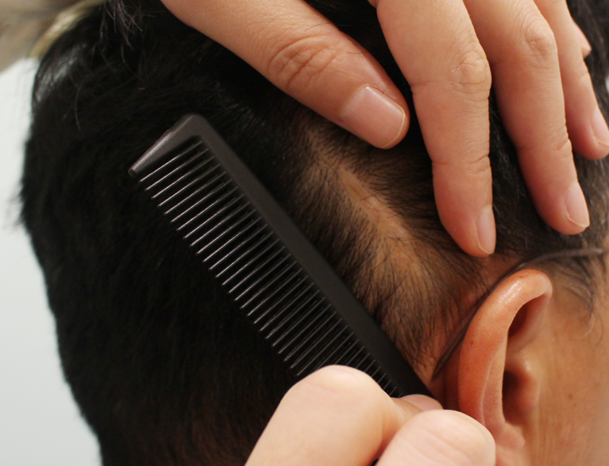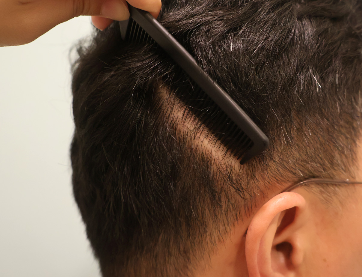 从后面看,头发不长的部位看起来是空的,所以找到了解决办法,在头部疤痕上接受了毛发移植。