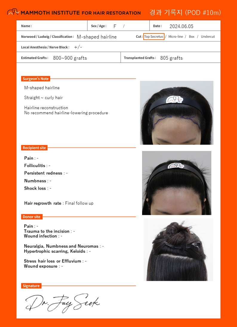 狎鸥亭Mammos无剃头非切开发际线矫正后期(1年以上)