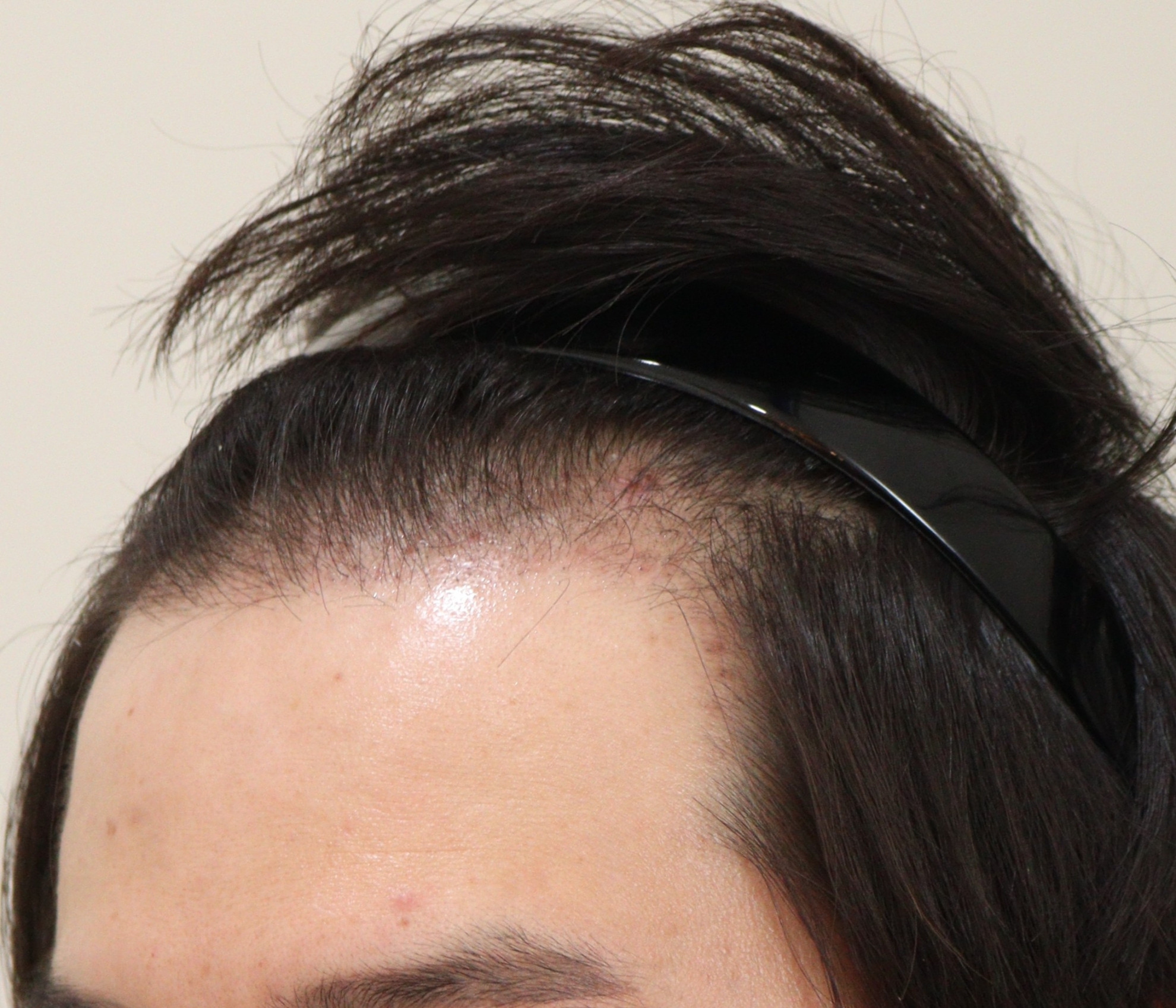 稀稀拉拉地露出头皮也很苦恼 想填满m字的同时把头线往下一点 所以接受了移植