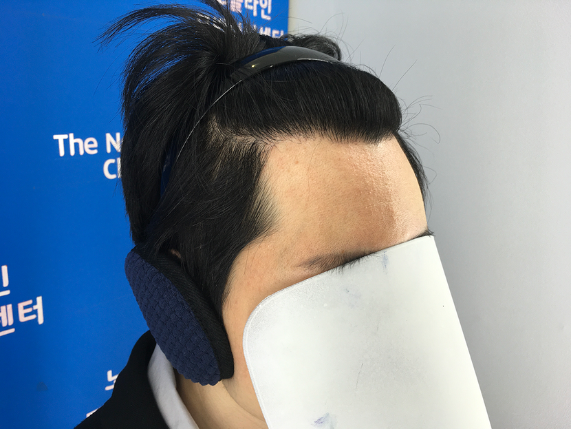 院长说,手术时前面不能露出手术痕迹,所以只种薄而柔软的头发,这是真的。
