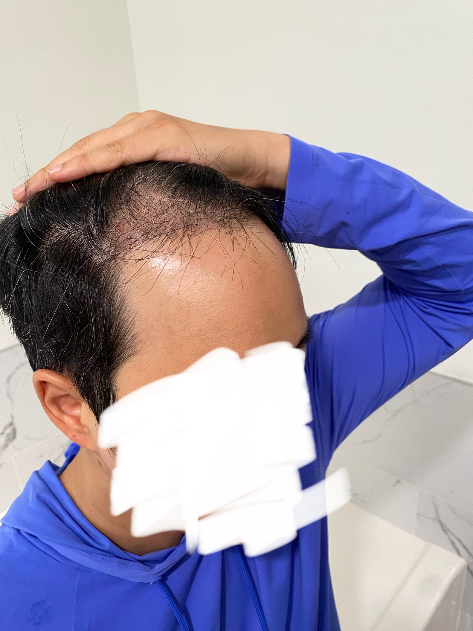 四个月过去了。 我感觉掉头发比以前少了一些。 看其他人的话,大概从4-5个月开始密度会变大,我好像还需要再等一段时间。 每天都在认真涂Propecia和处方药,得等密度再高一点了!