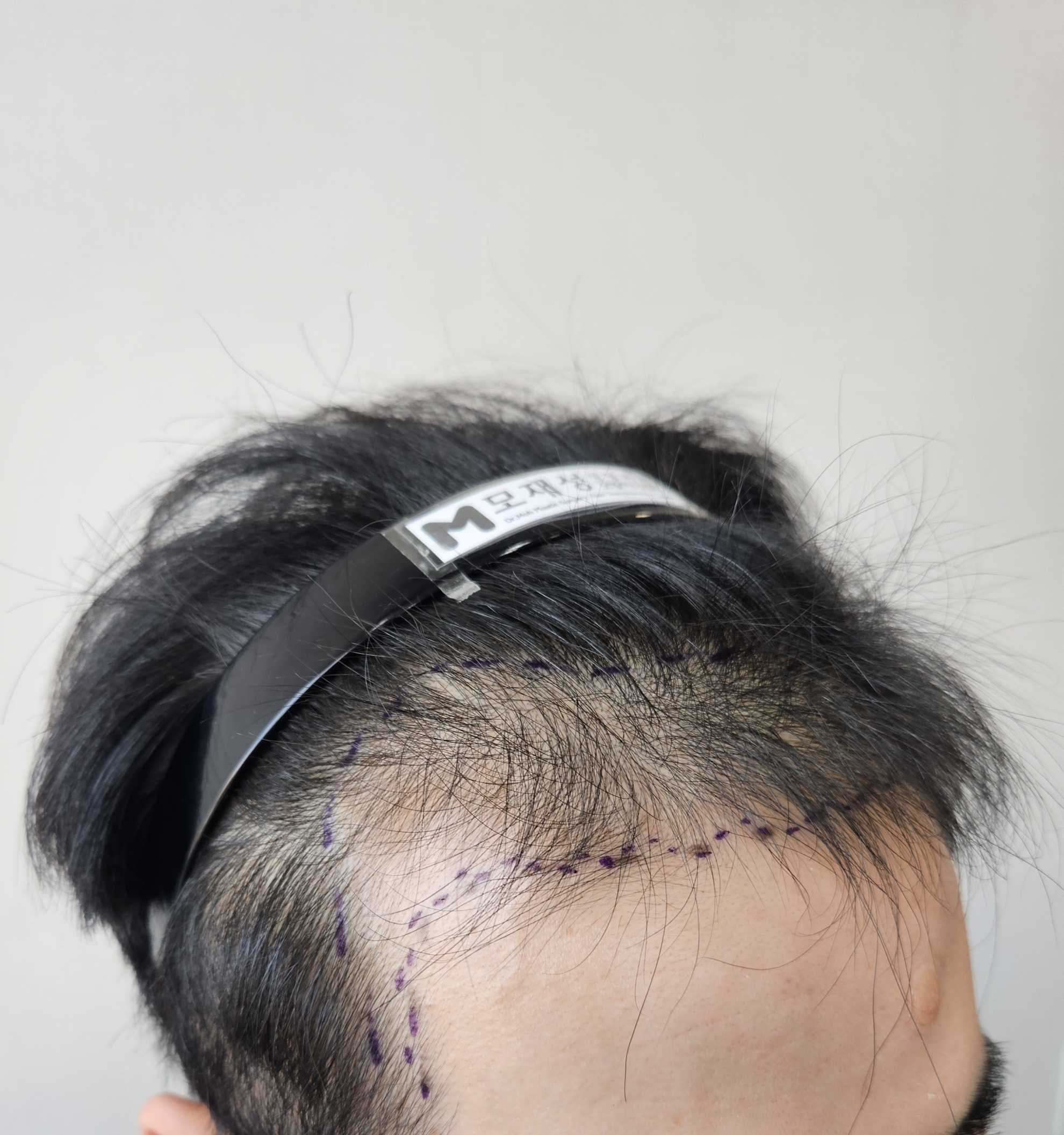 因为平时刘海比较柔软,密度比较低,为了弥补天生的M字型,所以找了毛发移植。