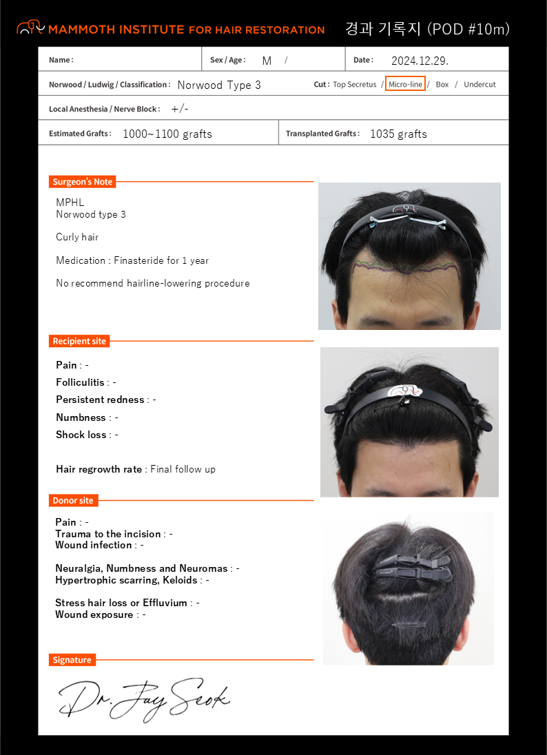 狎鸥亭猛犸发际线诊所1035 毛囊手术 10个月后期