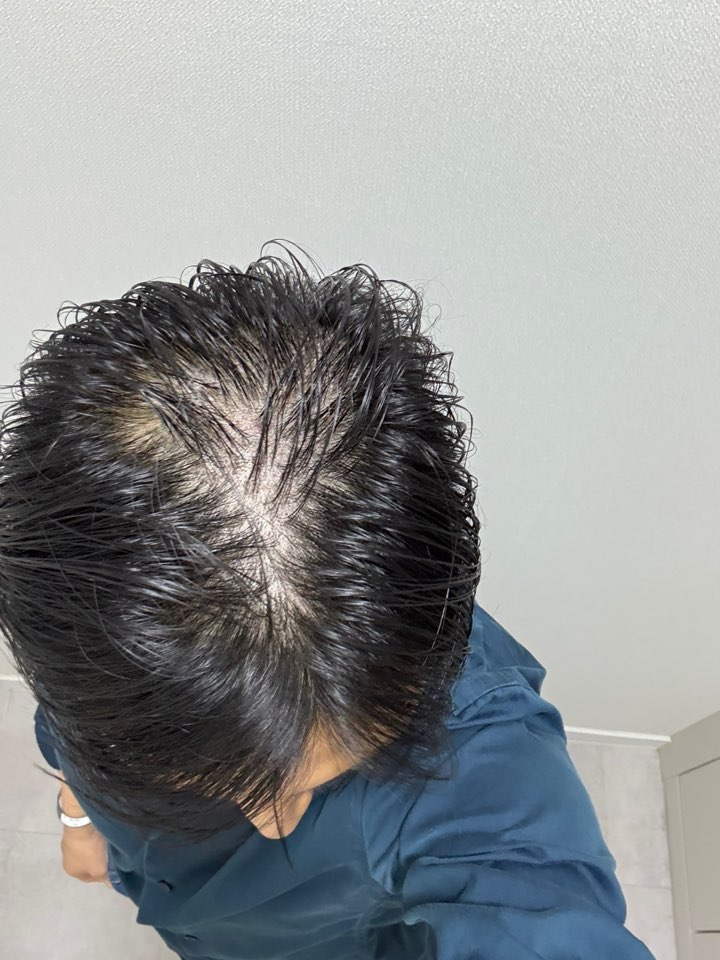 我就觉得这样不行,我就知道头顶上也能做毛发移植。 从那时起,向周围人询问了正式进行移植手术的医院,结果被介绍给了神社的茂院整形外科,决定进行移植。 我和院长咨询后,决定用相对较少的600毛囊覆盖整个脱发部位。 虽然才过了5天,但可能是因为心情,感觉白色部分有点减少了。 听说头顶部分的效果可能不会比M型脱发更快,所以要做好心理调节,以免焦躁。 手术比想象中要简单,手术后移植部位也愈合得快,对日常生活没有太大影响。 偶尔也会想是不是做了手术。 第10天左右去医院看病,以后会努力做自己能做的事情。 我会经常来,在不同时期留下后记的。 感谢您的阅读。