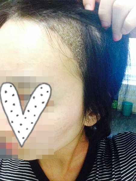 20岁出头,为了矫正M型脱发、降低额头高度,决定植发,第一次到医院就诊时,医生护士都很有信心地讲解,马上手术。 之后第2周摘除了结痂,与其他医院不同,被告知可以开始喝酒和吸烟,从第1个月开始移植头发开始脱落,目前几乎没有头发。
