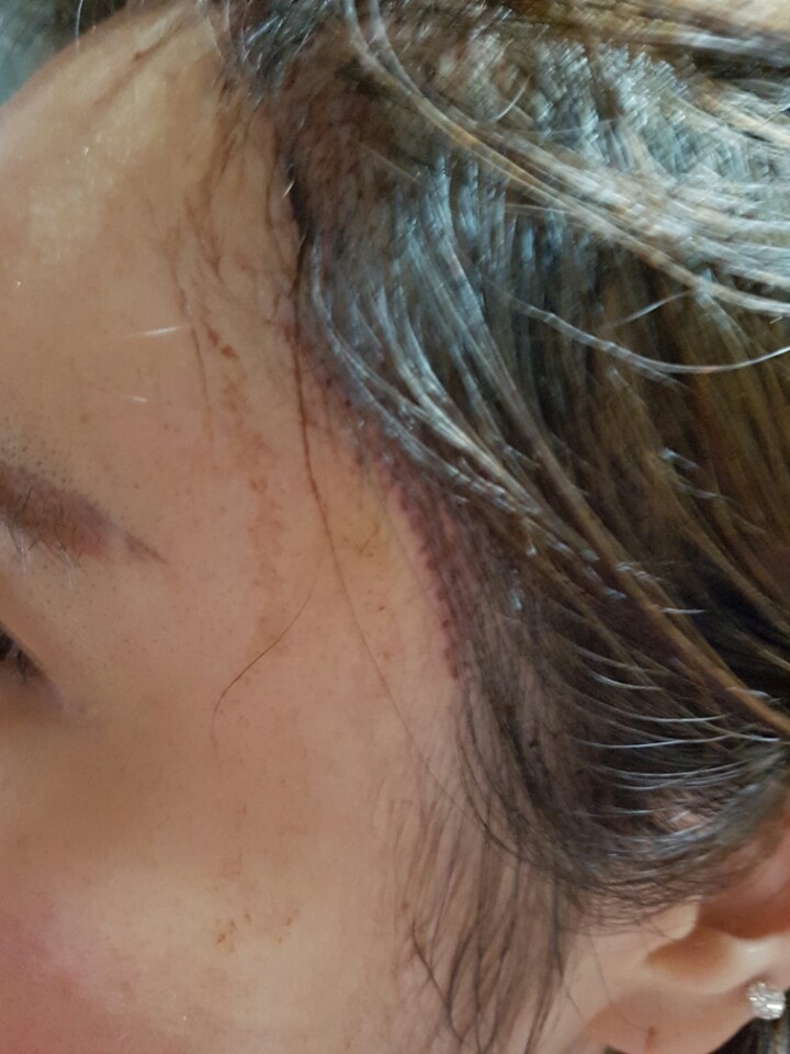 20岁出头,为了矫正M型脱发、降低额头高度,决定植发,第一次到医院就诊时,医生护士都很有信心地讲解,马上手术。 之后第2周摘除了结痂,与其他医院不同,被告知可以开始喝酒和吸烟,从第1个月开始移植头发开始脱落,目前几乎没有头发。