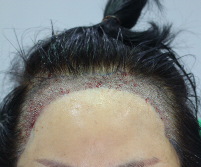 出生时额头很宽虽然年纪轻轻,但是随着时间的流逝掉下来的话压力会越来越大。在社会生活已经有一段时间了,还有积攒的钱,所以下了很大的决心这次移植了。做一件事的话 会做的很彻底 去过很多医院 在最值得信赖的地方做了因为是瞒着父母做的 为了尽量不露馅 所以剃了中毛术因为是第三天 所以不太会管理 但是我会努力的