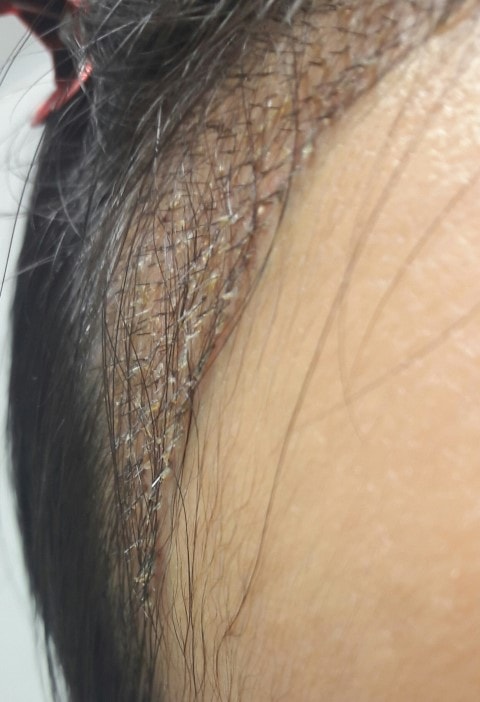 上面有3张是左边的头发,但大多数毛囊看起来都很白。呜呜