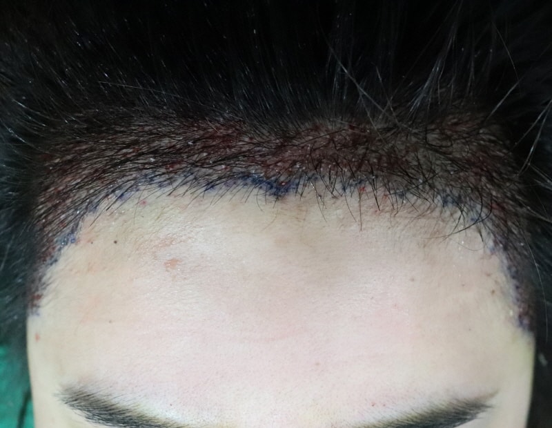20岁出头,为了矫正M型脱发、降低额头高度,决定植发,第一次到医院就诊时,医生护士都很有信心地讲解,马上手术。 之后第2周摘除了结痂,与其他医院不同,被告知可以开始喝酒和吸烟,从第1个月开始移植头发开始脱落,目前几乎没有头发。