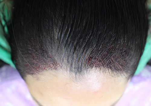 20岁出头,为了矫正M型脱发、降低额头高度,决定植发,第一次到医院就诊时,医生护士都很有信心地讲解,马上手术。 之后第2周摘除了结痂,与其他医院不同,被告知可以开始喝酒和吸烟,从第1个月开始移植头发开始脱落,目前几乎没有头发。