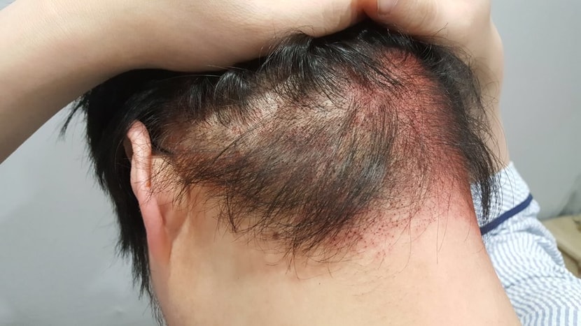 20岁出头,为了矫正M型脱发、降低额头高度,决定植发,第一次到医院就诊时,医生护士都很有信心地讲解,马上手术。 之后第2周摘除了结痂,与其他医院不同,被告知可以开始喝酒和吸烟,从第1个月开始移植头发开始脱落,目前几乎没有头发。